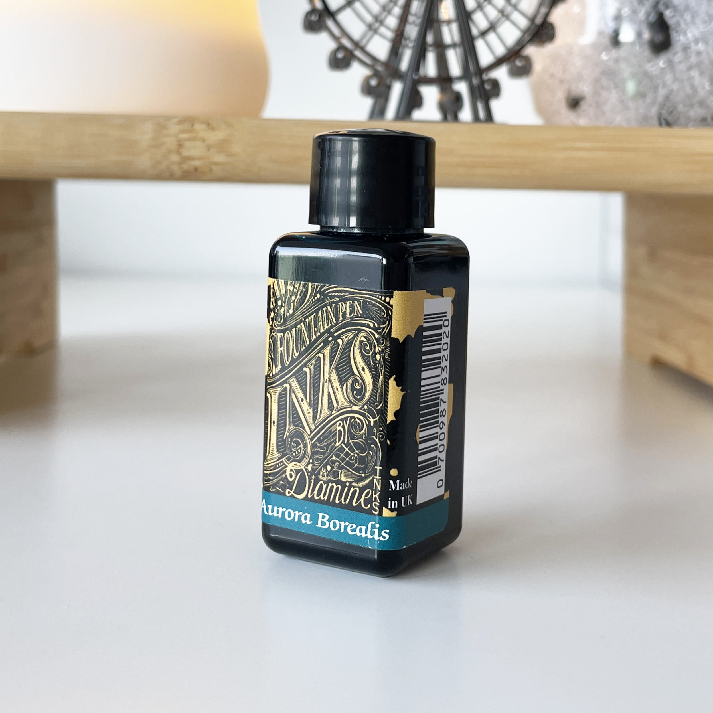 Aurora Borealis is a really pretty colour - a dark teal with a decent amount of shading. The real beauty here is the amount of red sheen that comes out, especially on the Tomoe River paper! Wow. It doesn’t show up on the Rhodia here, but I’ve written on the Rhodia notepad a fair amount with this ink in my Kaweco Sport <EF> and managed to get sheening even then.