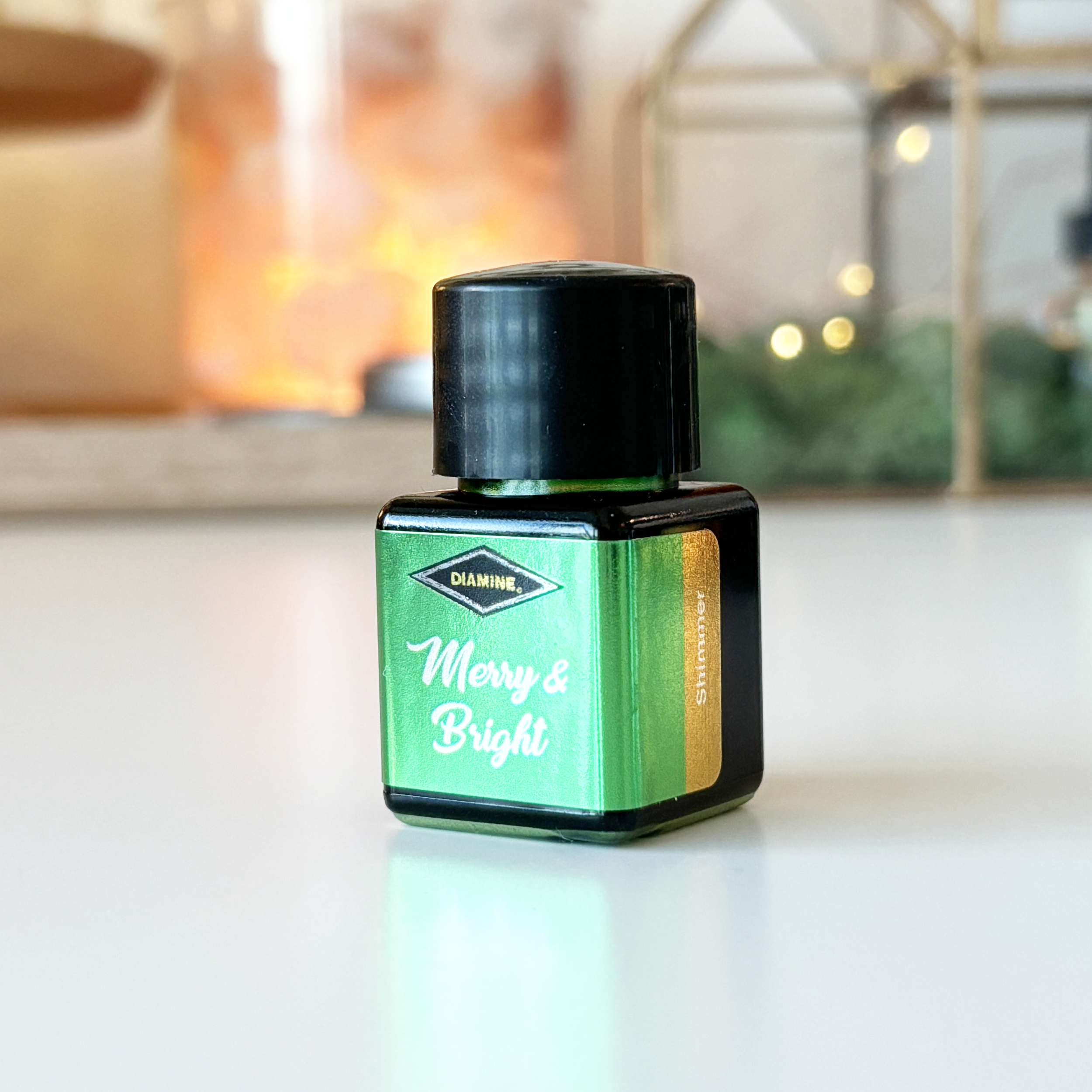 Merry and Bright is a radically bright green ink. The colour reminds me of green jello, green apples, and that green slime that Nickelodeon used to dump on people (speaking of, does anyone remember that Legends of the Hidden Temple Show? I used to watch it all the time on YTV - the Canadian equivalent of Nickelodeon). It’s a darker green compared to Appletini from last year’s Diamine Inkvent calendar, and also features shimmer this time around. That is to say, if you have both calendars it’s not a duplicate!