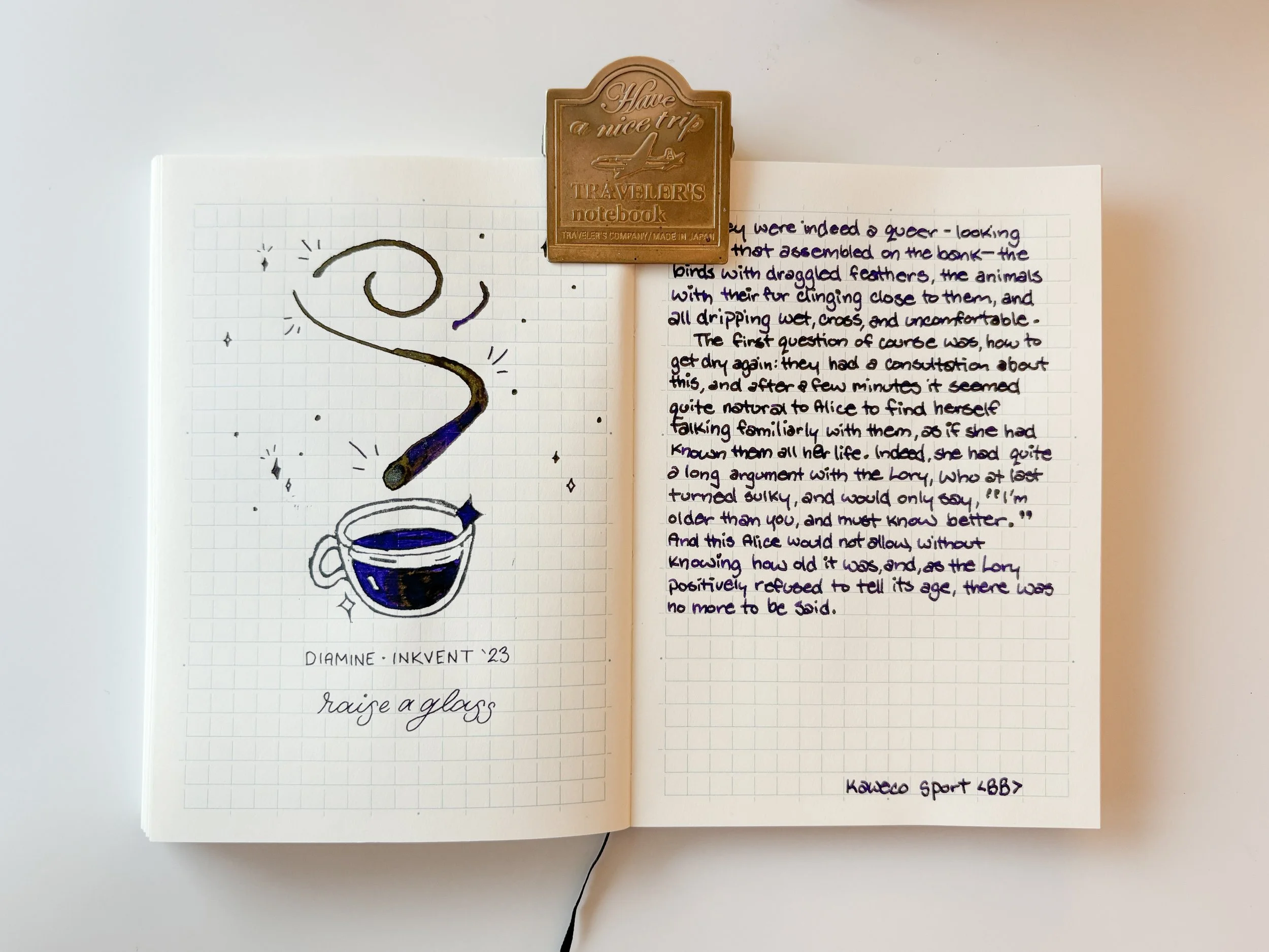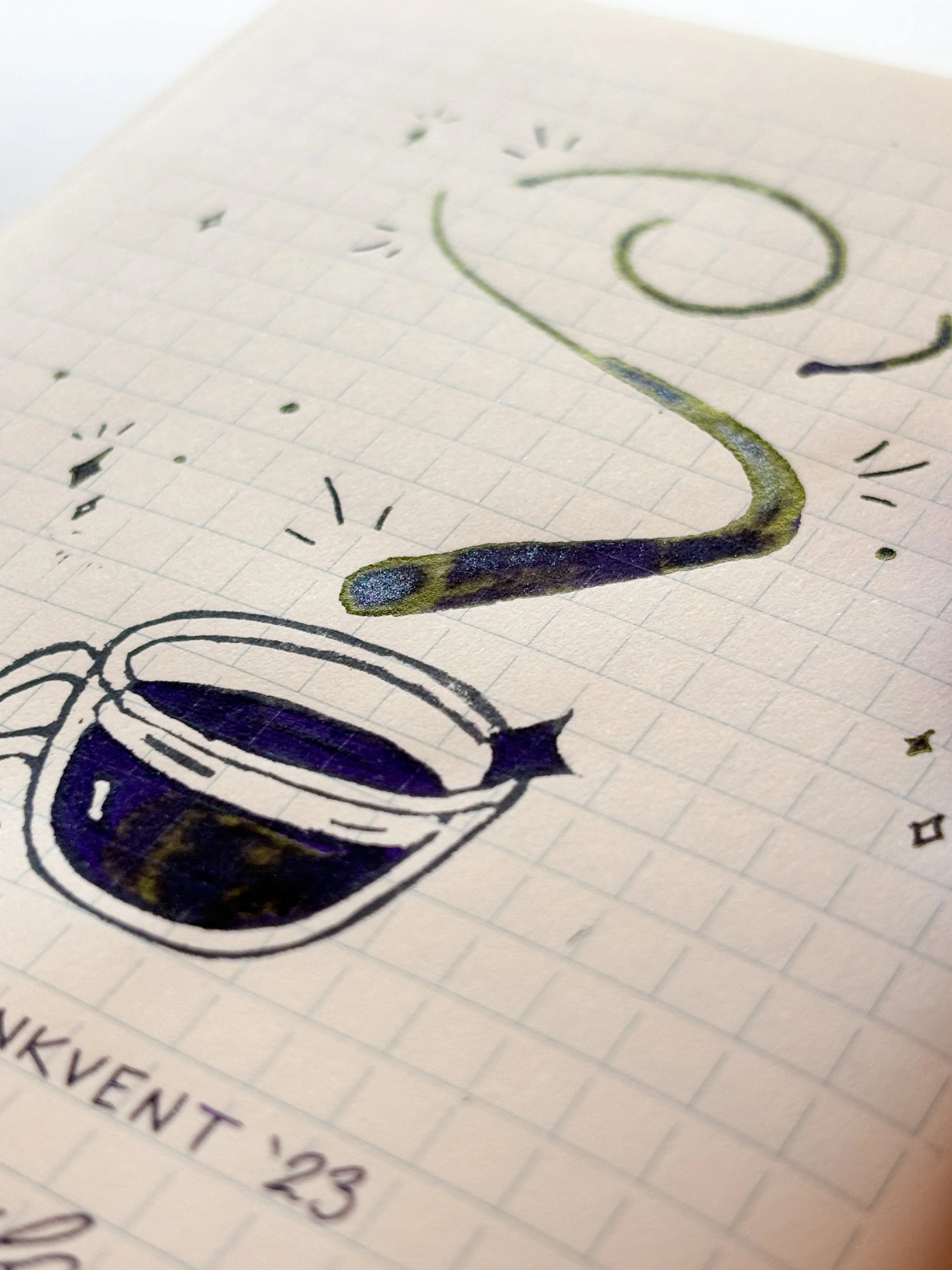I think the ink really shines best while writing - in the swatch the sheen seemed a little too much - too heavy and not a great combo with the purple. But seeing it in the writing example using the <BB> nib I think it looks fantastic.