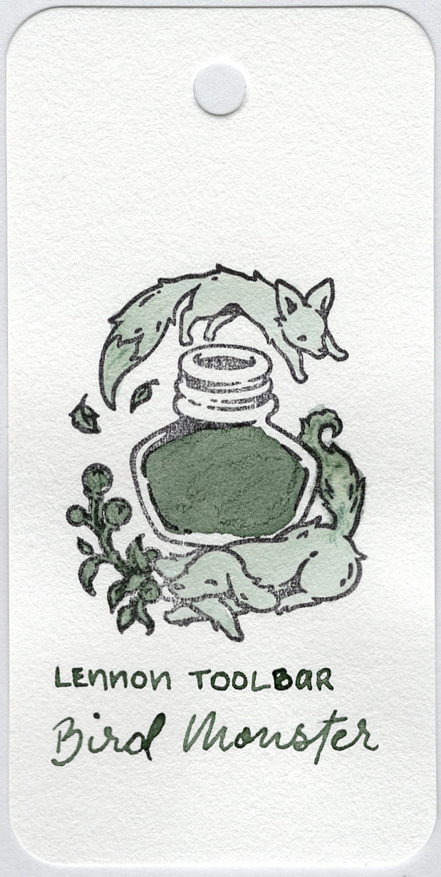 Lennon Tool Bar - Bird Monster, swatched on a Col-O-Ring swatch card (design is a Yoseka Stationery stamp).