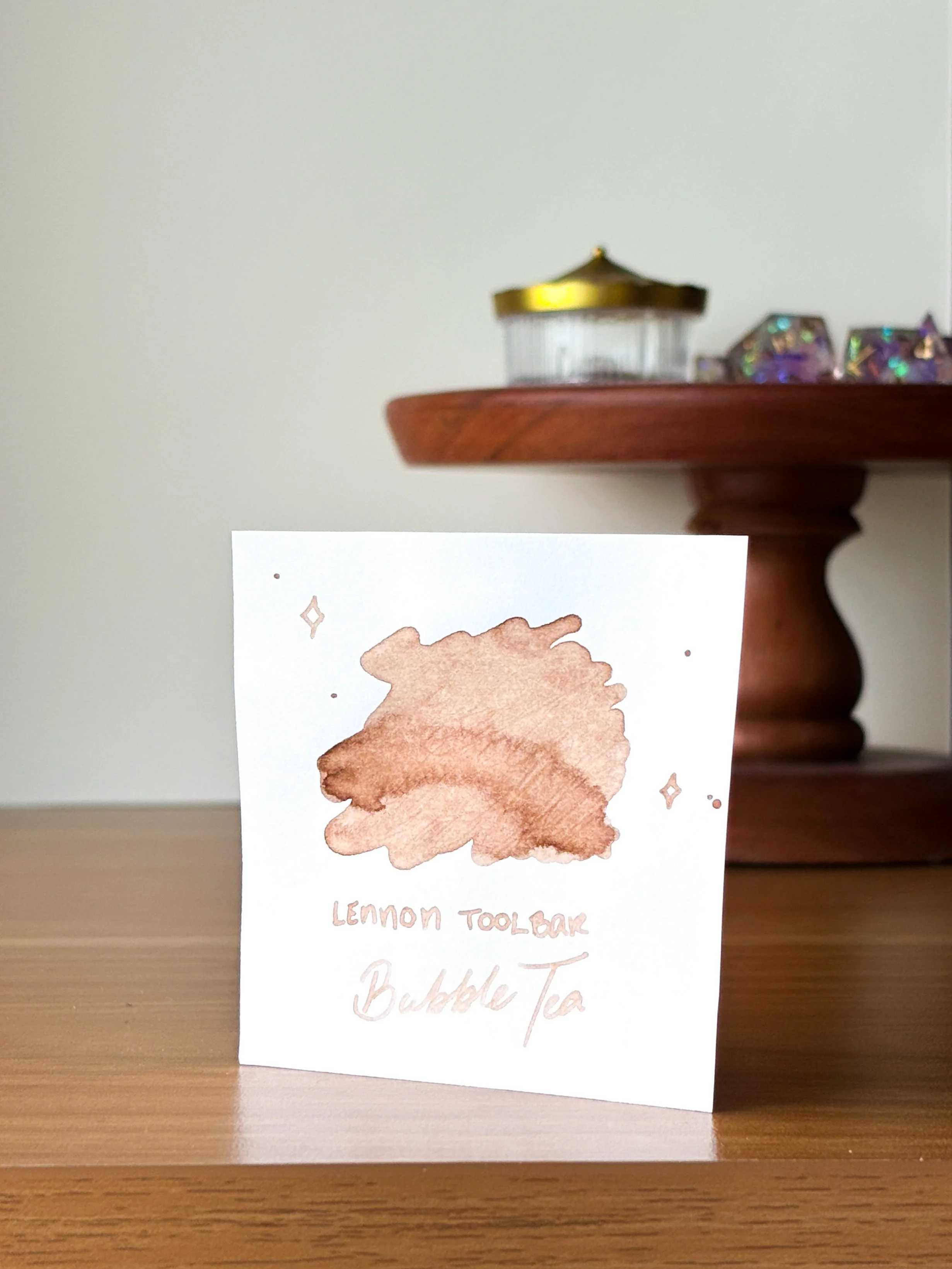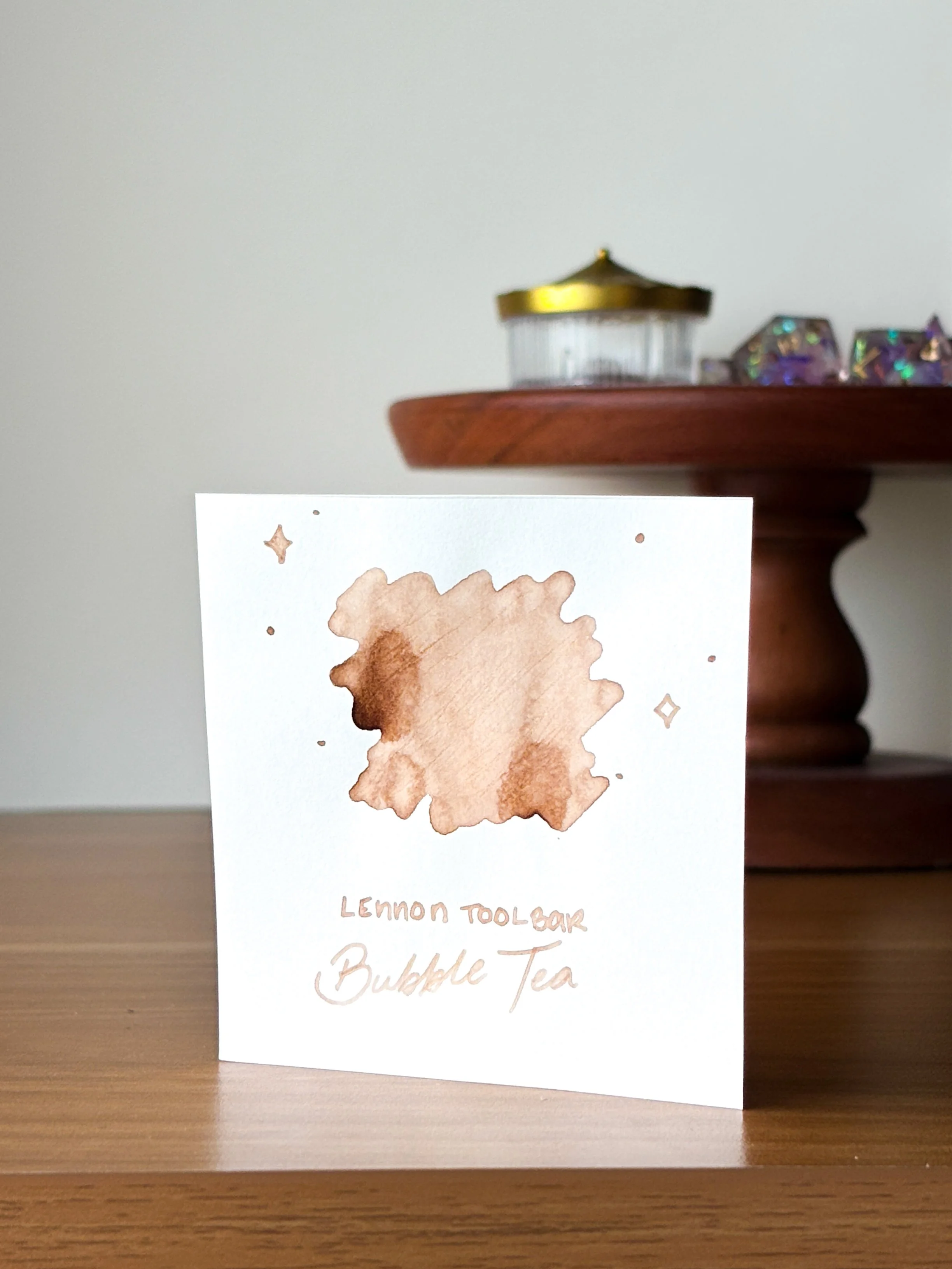 The Bubble Tea ink from LTB is a beautiful light brown ink, and honestly quite accurate to milk tea (which I can attest too—it’s my drink of choice: a hot pearl milk tea with extra pearls >:))