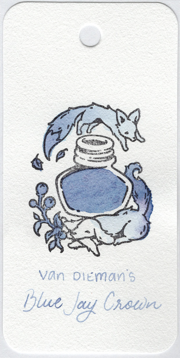 Van Dieman’s - Blue Jay Crown, swatched on a Col-O-Ring swatch card (design is a Yoseka Stationery stamp).