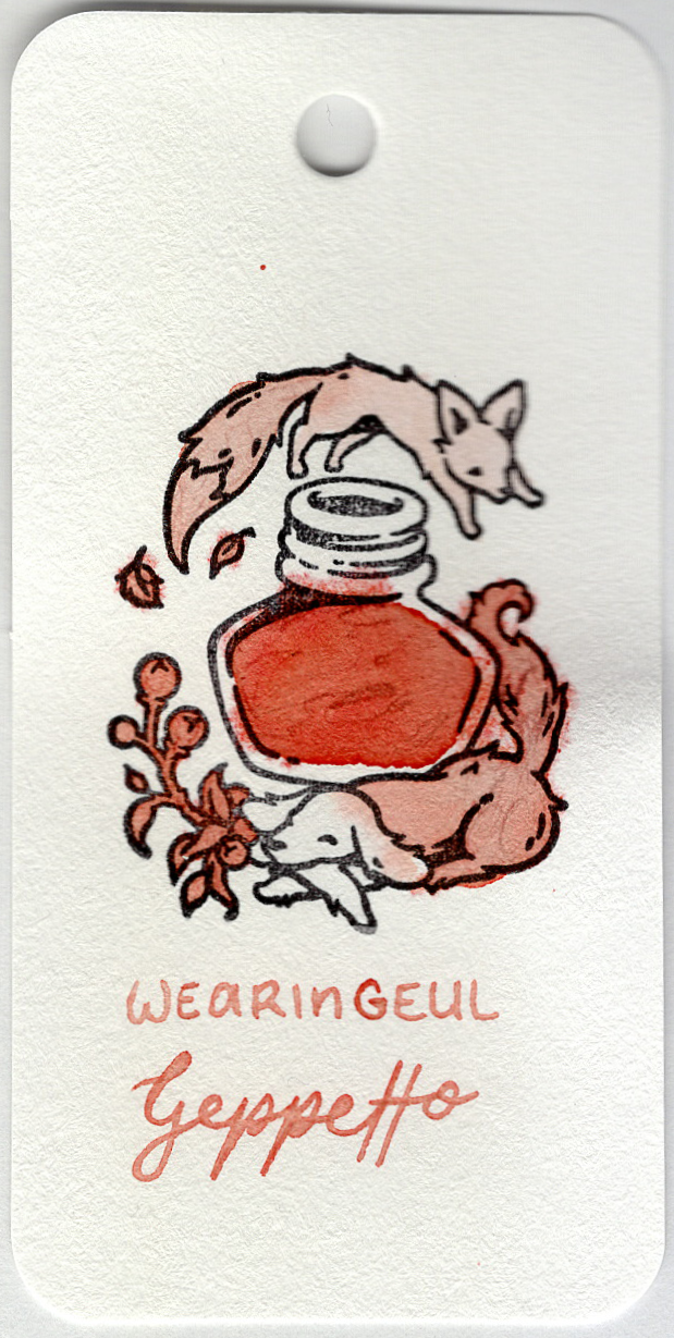 Wearingeul - Geppetto, swatched on a Col-O-Ring swatch card (design is a Yoseka Stationery stamp).
