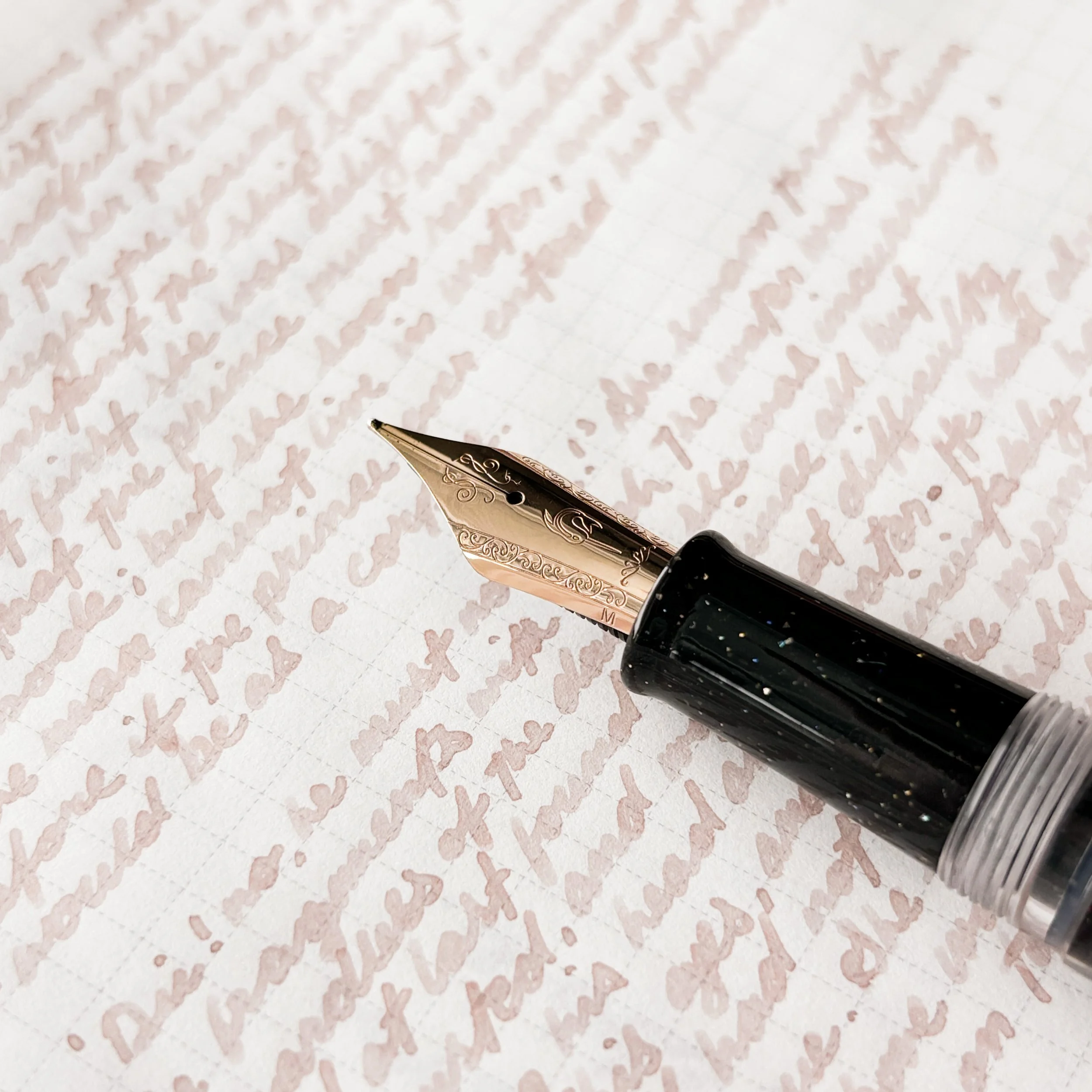I was SO excited to try this ink out. It’s the colour I dream of having so much of my stationery to be. White Rabbit is a gorgeous beige-y/pink fountain pen ink. It does kind of remind me of Ferris Wheel Press Lady Rose, though this ink is much less pink, and much more of a beige. Surprisingly, I didn’t find the flow to be wet or dry, but I’m not particularly picky about that.